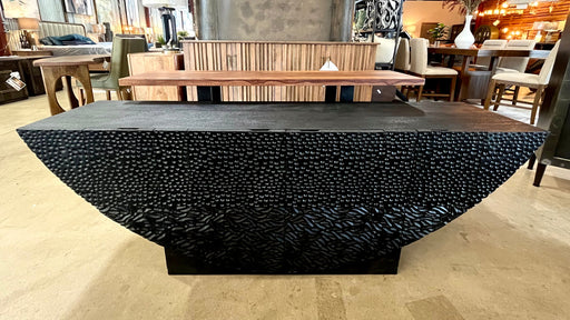 Description An incredible display of unique craftsmanship makes this credenza the focal point of any room. The solid acacia wood is crafted in a ge...