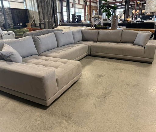 Nest Home Collection$1,898.00| /This designer tufted sofa is covered in a chenille fabric with decorative studs. 96 39 30