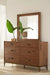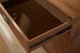 Mid-century style takes a contemporary detour with the Adler collection by Modus Furniture. With a simple yet sophisticated profile, Adler is built from Walnut veneers in a knotty walnut finish. Bronzed brass campaign-style corner brackets and tapered metal legs provide a subtle contrast to the warm tones of the timber for a look that is both fresh and timeless.