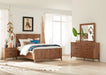 - Solid wood frame, wood veneer headboard and footboard panels, plywood side rails, bed slats