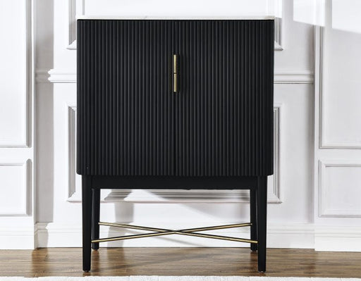 The Vida Black Wine Cabinet with Marble Top exudes art deco flair and old Hollywood glamor, offering elegant dining room storage. Its reeded black-...