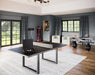 | Materials: | brushed mango veneer in a deep and soft charcoal, a brass inlayed court divider, iron framing, net and heavy base |