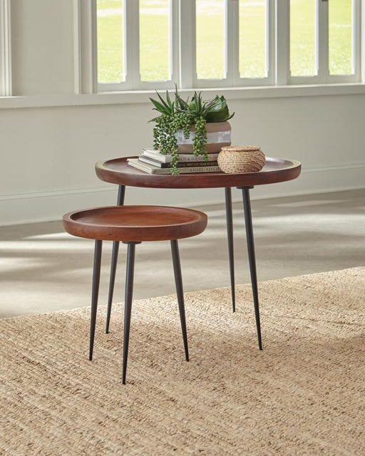 Coaster$298.00| /Two-piece nesting table set by Coaster Furniture features cinnamon tops and gunmetal legs. Perfect for any room and variety of styles. W-24.3" D...
