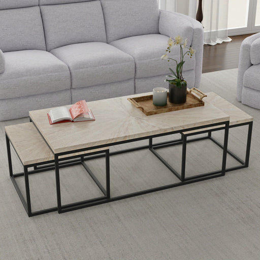 Parker House$499.00| /Multi-step, sandblasted Weathered Blanc finish Solid and planked Mango wood and solid iron construction Rectangular cocktail with two slide up nes...