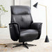 This power recliner features plush padding, an ergonomic design, and a 360-degree swivel base that lends plenty of modern style and time to relax. It rests on a 5-star black metal base that gives you the freedom to move in any direction, toward the TV or the nearest conversation. The solid wood frame is wrapped in water-resistant genuine leather for durability. The cushions are foam-filled to provide ample support as you push the side button to recline. Accommodates up to 360 lbs.