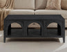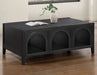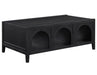 • 48-inch black coffee table with three arched cubby compartments blends architectural charm and function—ideal for stylish display or storage that keeps essentials close but uncluttered.