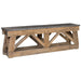 Ruggedly handsome, this solid wood 100" console table showcases the natural variation and character inherent in reclaimed pine. Distressed by hand and topped with natural bluestone, this table brings a weathered, classic aesthetic to any room.