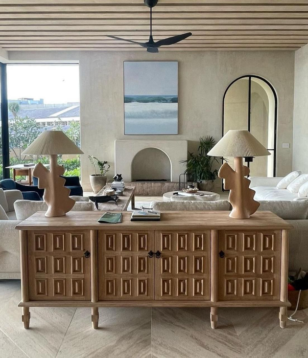 The Porter Media Center combines classic craftsmanship with functional design. Featuring intricately carved four-door panels, turned legs, and a warm wood finish, this media center offers ample storage while adding timeless elegance to any living space.