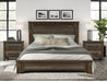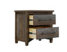 Elevate your bedroom environment with the Town collection, a beautiful blend of rustic style and modern sophistication. Each piece features a multi-step lacquer finish that highlights rich brown and gray tones, enhancing the wood's natural beauty. Crafted from pine and poplar, this collection boasts a wire-brushed wood texture for added character. This beautifully designed bedroom set will transform your space and leave a lasting impression. make The nightstand offers ample storage with two spacious drawers. Iron center handle pulls add an industrial touch, beautifully contrasting with the warm design.