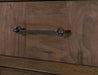 Crafted from parota and engineered walnut wood, this dresser showcases timeless beauty and exceptional durability. The Walnut Collection features a translucent multi-step lacquer finish in a rich reddish-brown tone, accentuating the wood's natural beauty and grain. The dresser includes six drawers and a central cabinet with two doors and fixed shelves, offering ample storage. The trim textured design adds a distinct touch of sophistication and style to the collection. Transform your bedroom into a stylish sanctuary with the Walnut Bedroom set, where exceptional craftsmanship meets modern design.
